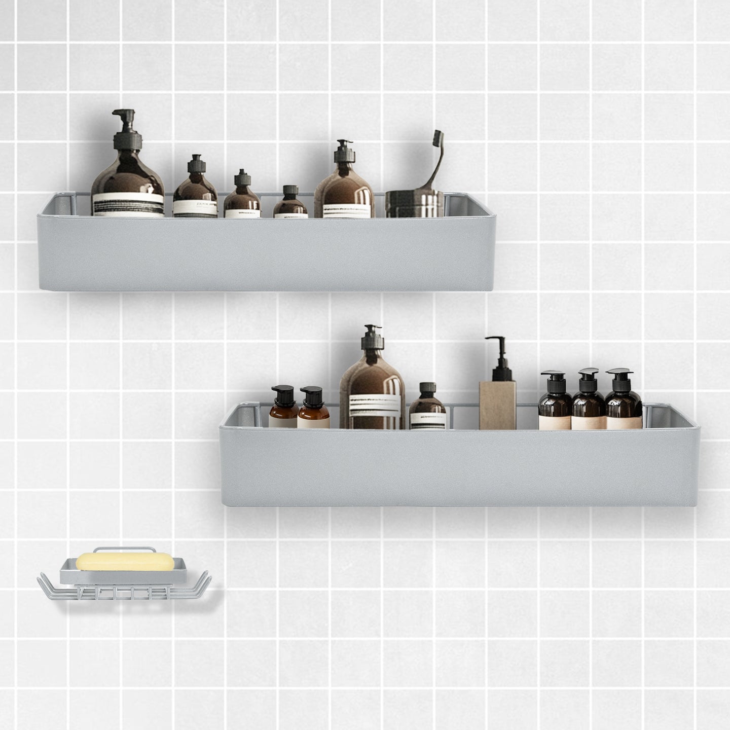 - SPACIOUS & PRACTICAL DESIGN: Each Shuntong shower organizer offers ample storage with dimensions of 15.7" and 15.2". These generously sized racks provide plenty of room for your essential bathroom items like body wash, shampoo, conditioner, and facial cleansers. The raised guard rails securely hold your items in place, preventing them from accidentally falling.