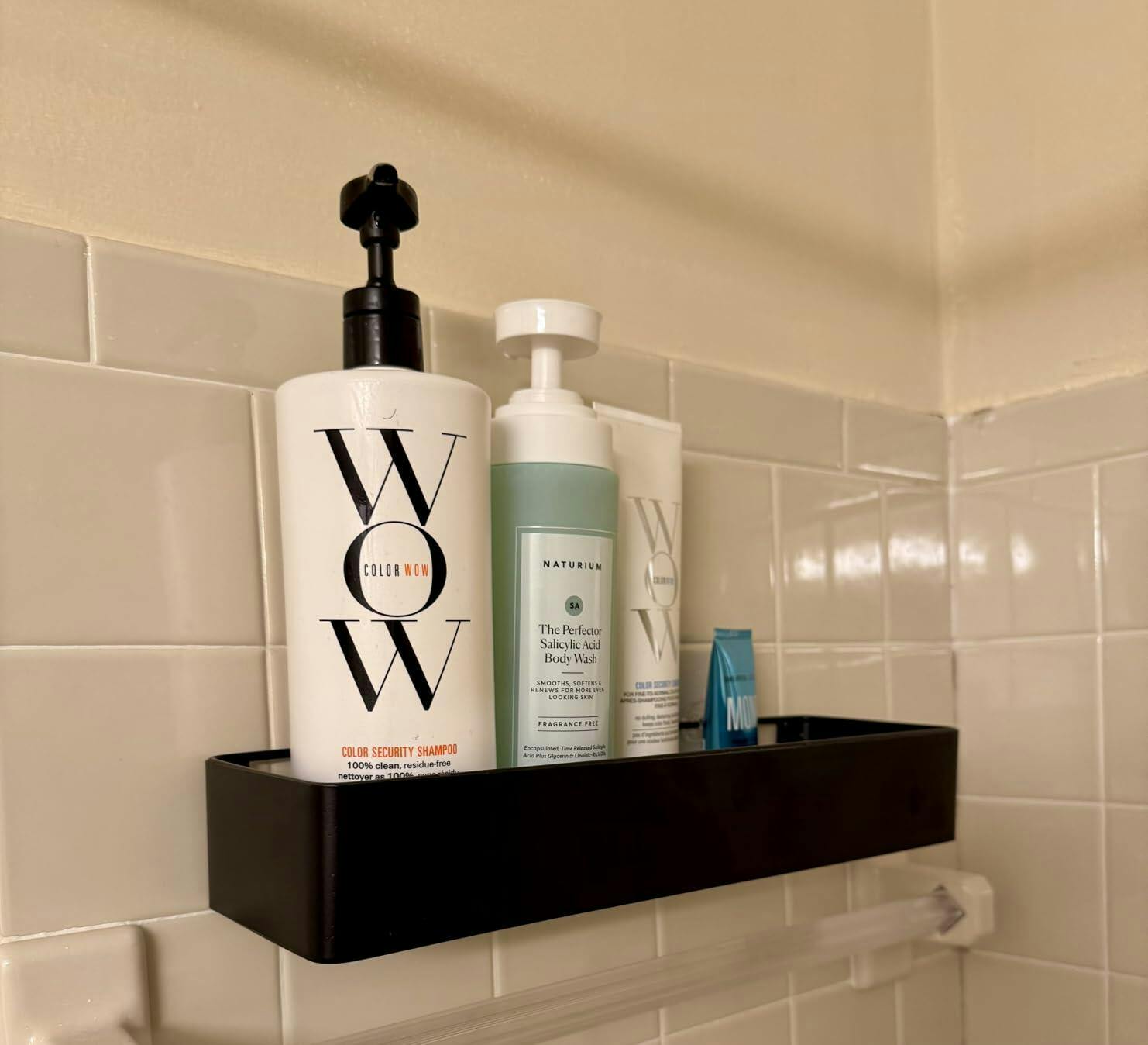 I received this product for free through the Vine program and honestly didn’t expect to love it as much as I do. These shelves are super sleek and look great in my shower. The adhesive is strong and has held up perfectly, even with full bottles of shampoo, conditioner, and body wash. I love that there’s no drilling required and they were really easy to install. I stuck them on smooth tile and they haven’t budged at all. The black finish gives it a modern touch and it’s rustproof, which is a huge bonus. I’ve already recommended them to friends. Definitely a functional upgrade that looks way more expensive than it is.