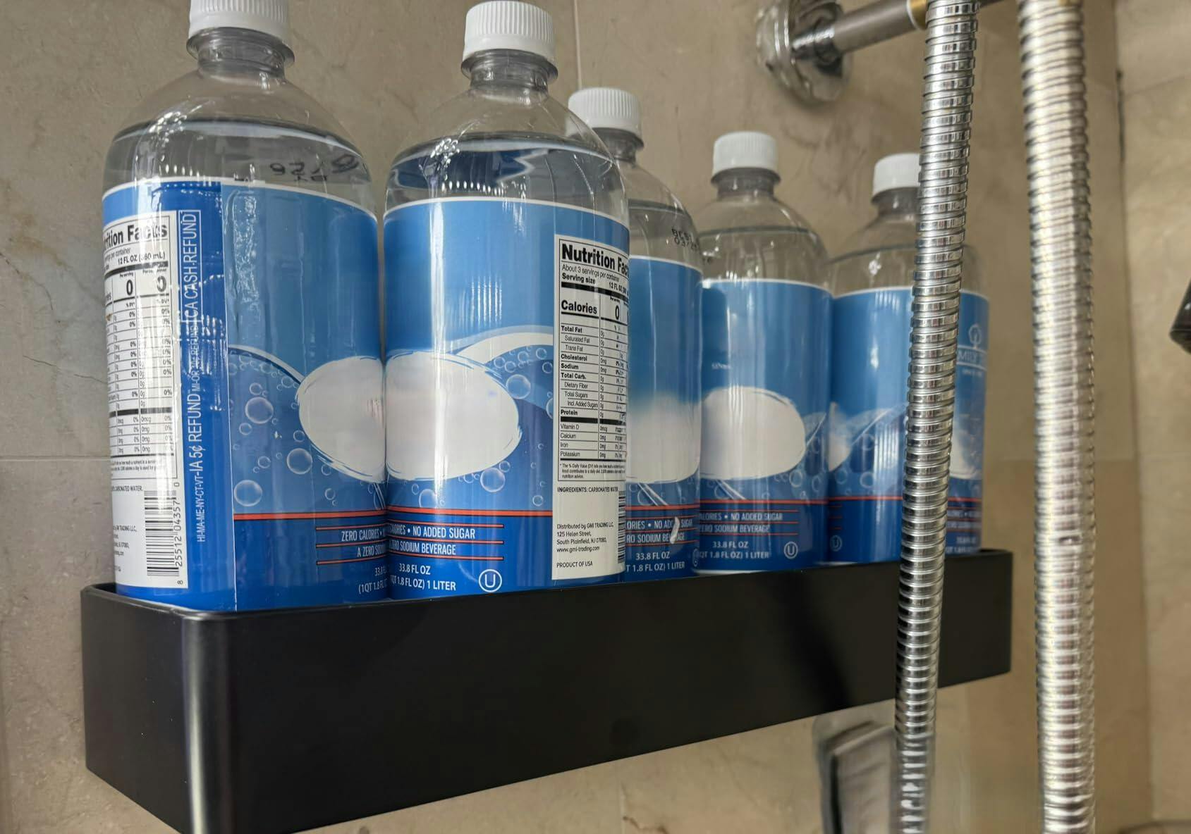 The shelves are attached to the wall with self-adhesive strips. The surface area of the adhesive strip is much larger than the average. Usually, the seller asks you to wait at least 24 hours for the glue to cure, but this seller is so confident in their product that they don't mention the waiting time. The installation is straightforward; the manual is printed in English on high-quality paper with normal-size fonts. Placing the strip parallel to the ground would be a good idea to distribute the weight evenly among the three hooks. The size of the sheaves is large. I used water bottles to test the strength of the bond. Usually, three water bottles are all that I can fit on the shelf. The Premium Shower Caddy, Adhesive Bathroom Shower Organizer, and Storage hold five water bottles for 11 lbs. The shelves are hanging on small hooks embedded in adhesive strips. I wish the seller had provided an option to order more adhesive strips than shelves so that repositioning shelves to accommodate people with different needs would be easy. The strips are unobtrusive and don't need to be removed for a temporary arrangement.