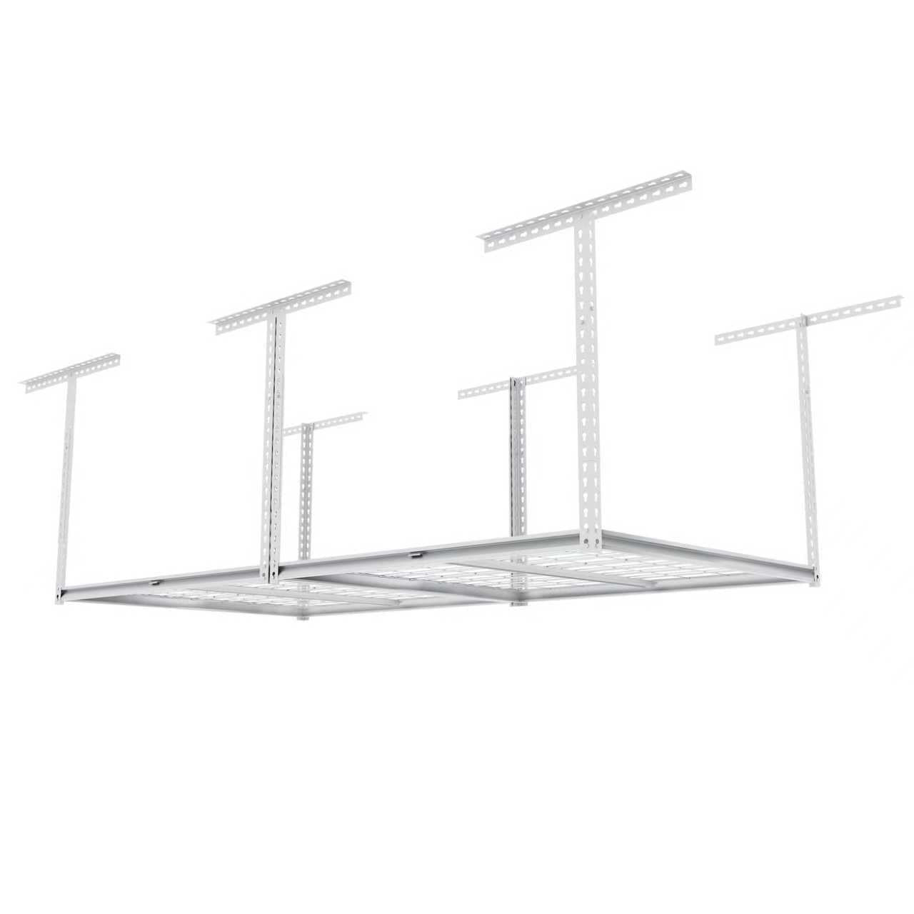 The Atlas 4 x 8 ft Adjustable Height Overhead Garage Storage Rack 900 lbs Heavy Duty Capacity White